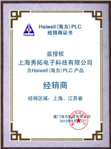 恭喜上海秀拓電子科技有限公司成為廈門(mén)Haiwell(海為)PLC產(chǎn)品特約經(jīng)銷(xiāo)商,歡迎新老客戶(hù)來(lái)詢(xún)價(jià)!