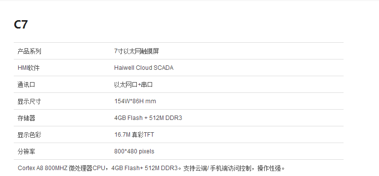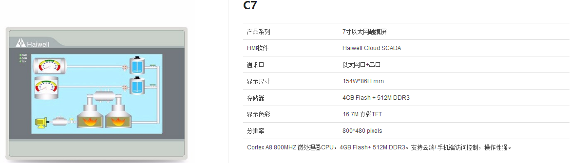 C7 7寸以太網(wǎng)觸摸屏支持云端/ 手機(jī)端訪問控制